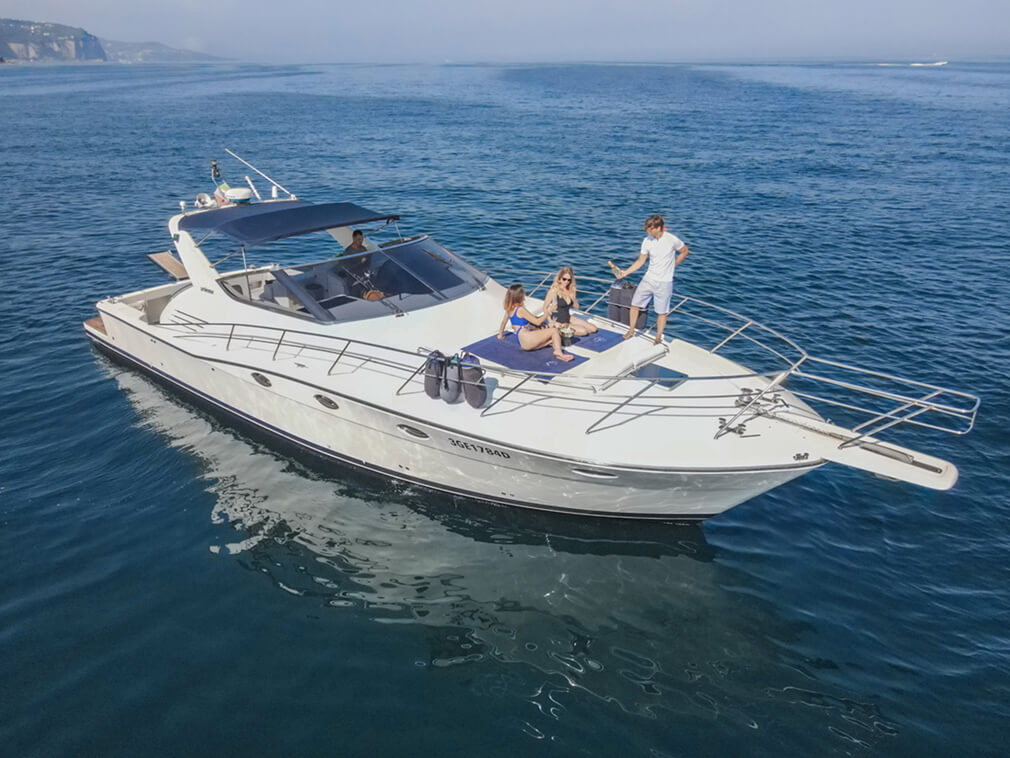Experience the epitome of Italian luxury aboard the Far & Wide, our exquisite 50-foot Uniesse yacht. As you glide along the stunning Amalfi Coast, you’ll feel the perfect harmony of grace and power beneath your feet. This masterpiece of engineering offers unparalleled comfort and stability, ensuring a serene journey even at thrilling speeds.